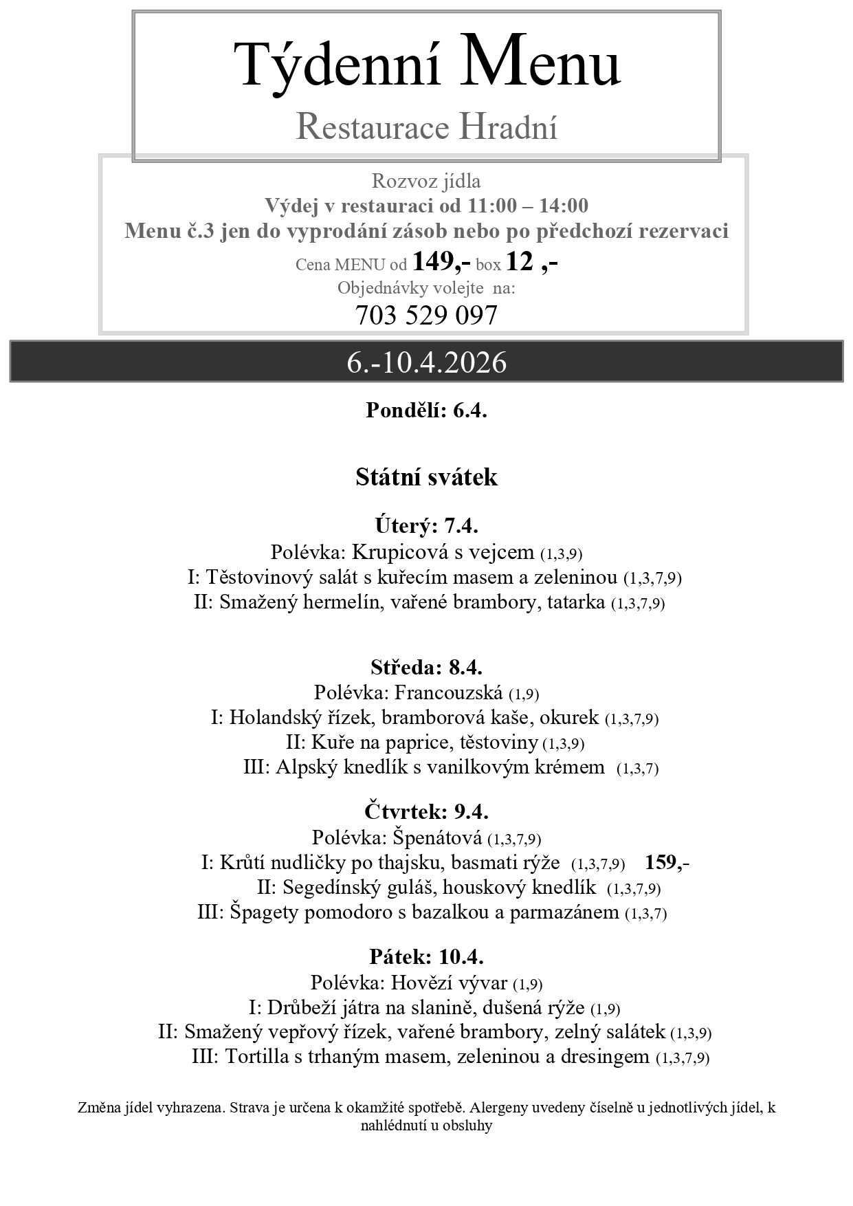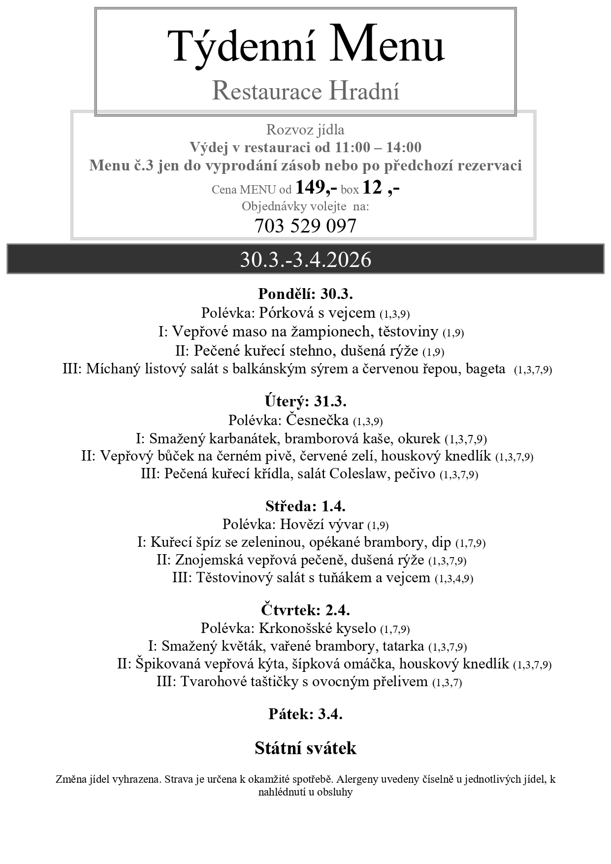 Změna jídel a alergenů vyhrazena